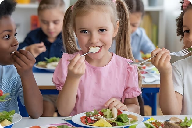 Consistent meal and snack times help children build healthy routines and stay focused during learning.
